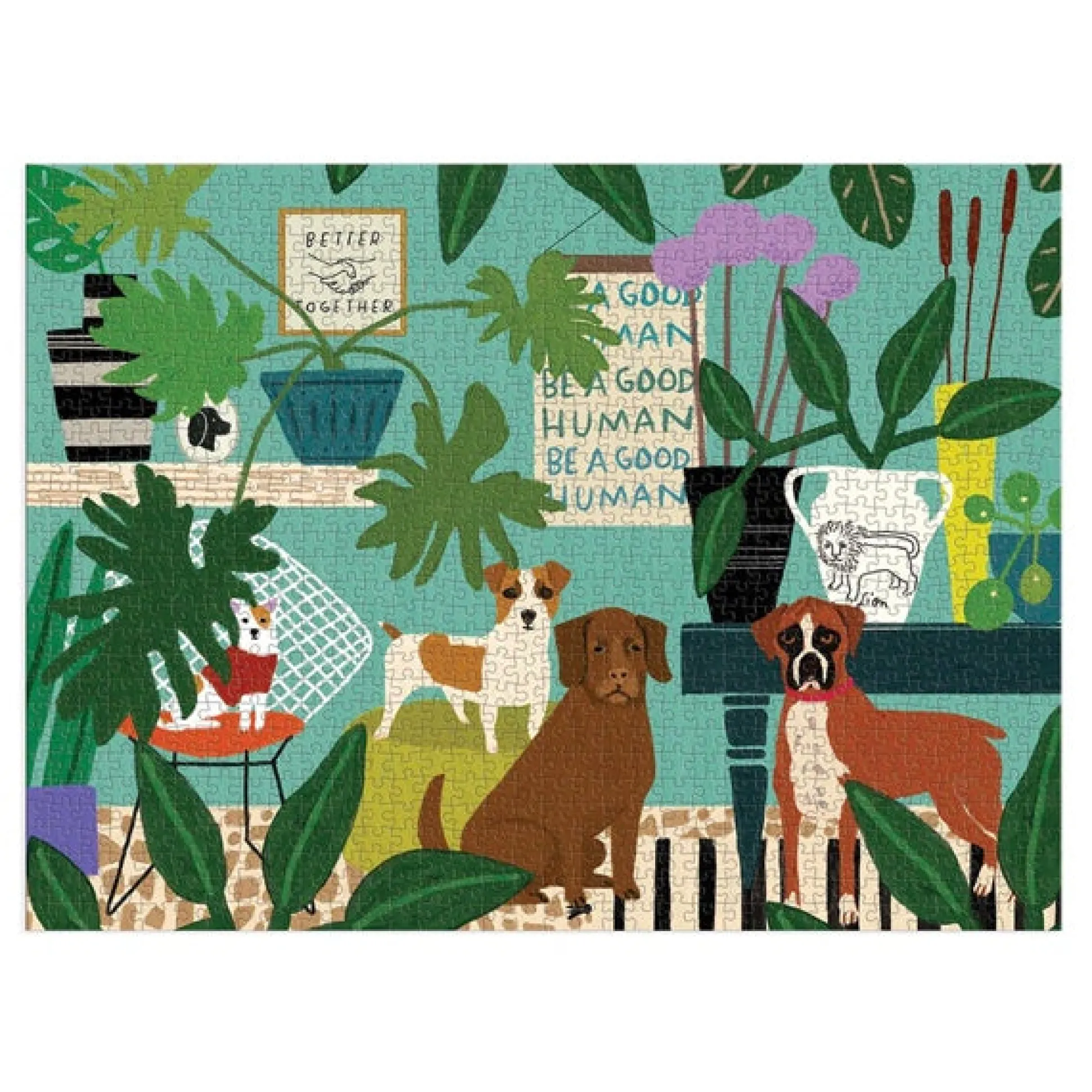 This Cute Jigsaw Puzzle Features An Illustration From Artist Anne Bentley – With Lush Houseplants And Cute Dogs! 1000 Pieces.