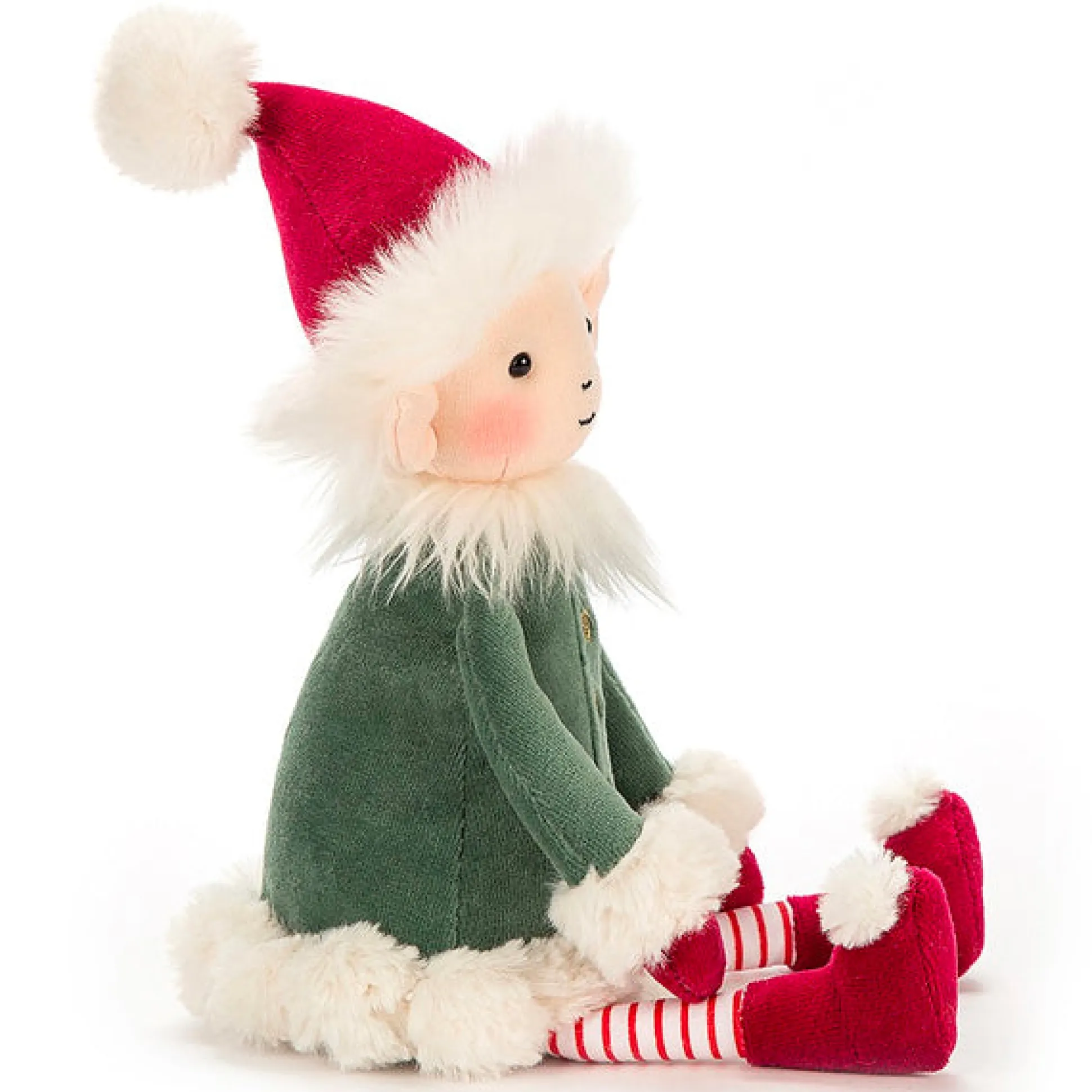 Jellycat Leffy Elf Is Here To Give You A Hand This Christmas. With Its Candy Cane Socks, Red Boots, Grassy Green Coat And Gold Buttons This Pointy Ear Elf Is Here To Make Sure This Christmas Is The Best One Yet.